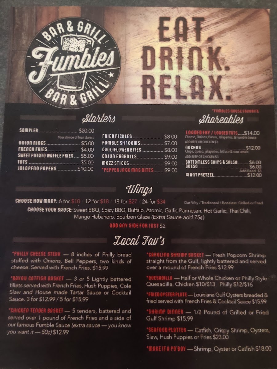 Welcome to Fumbles Bar & Grill, a cozy corner in Shreveport that marries delightful flavors with a welcoming atmosphere. Located at 3142 N Market St, this eatery is all about hearty, feel-good food. The menu boasts an enticing array of starters like Fumble Shrooms and Cajun Eggrolls, perfect for sharing with friends over a game of pool.
